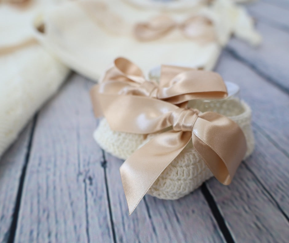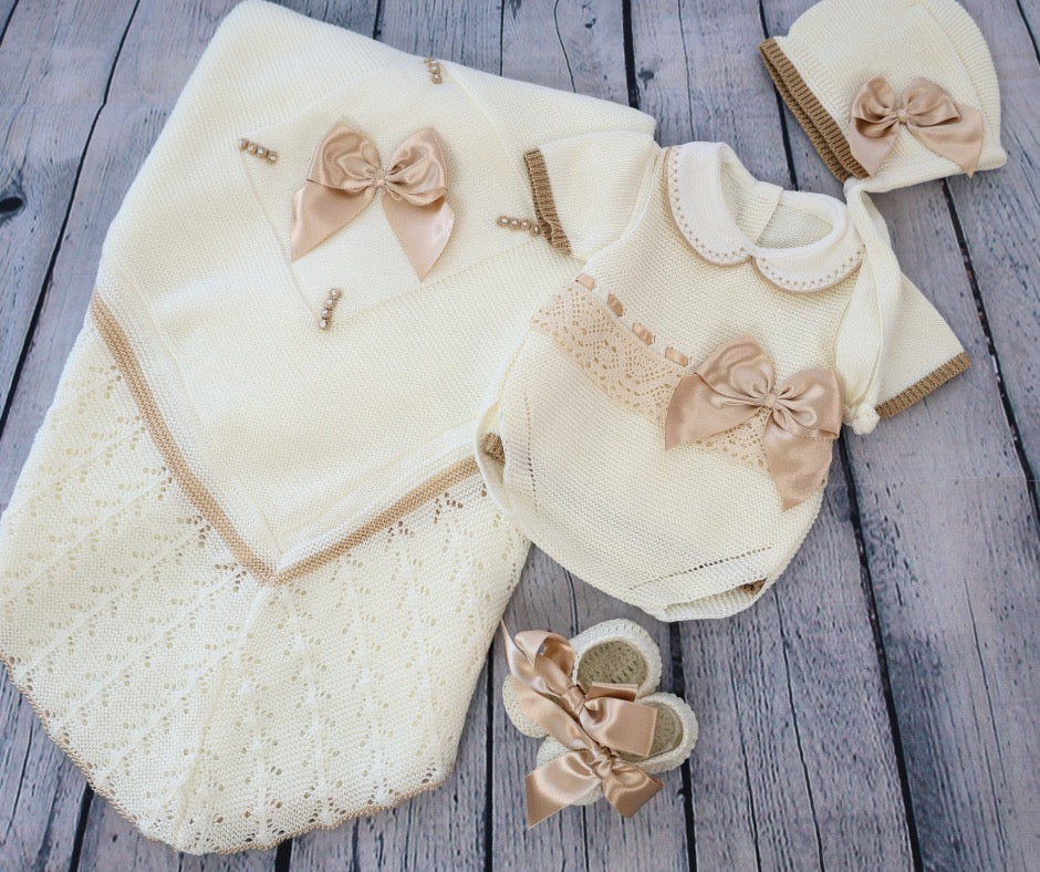 This beautifully crafted baby set is made from 100% cotton yarn, offering a soft and gentle touch for your newborn’s delicate skin. It includes a charming embroidered blanket, matching bloomer,  booties, and a coordinating hat—each piece designed to create a perfectly coordinated look.