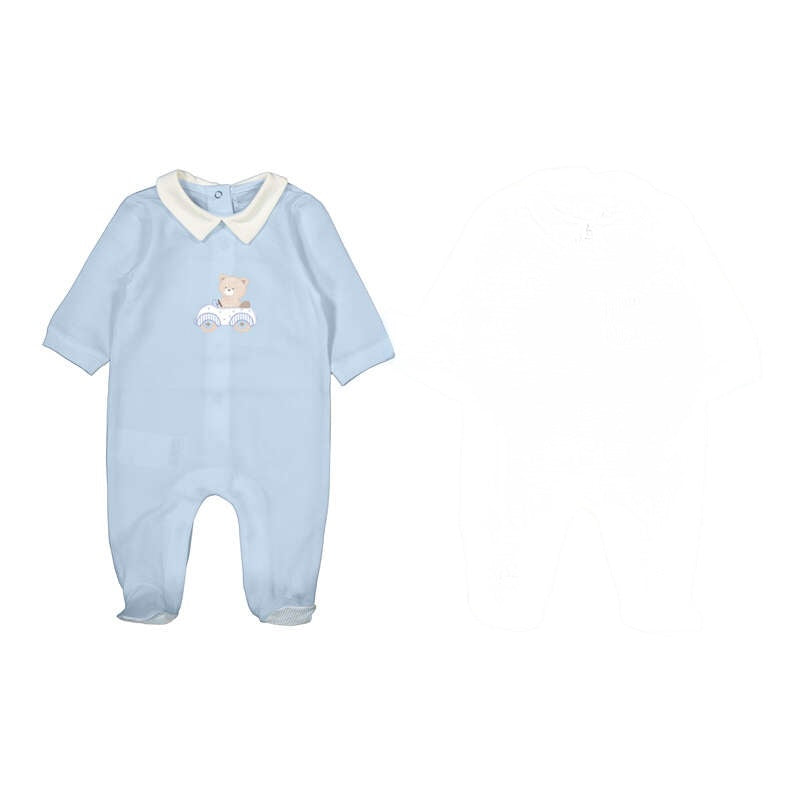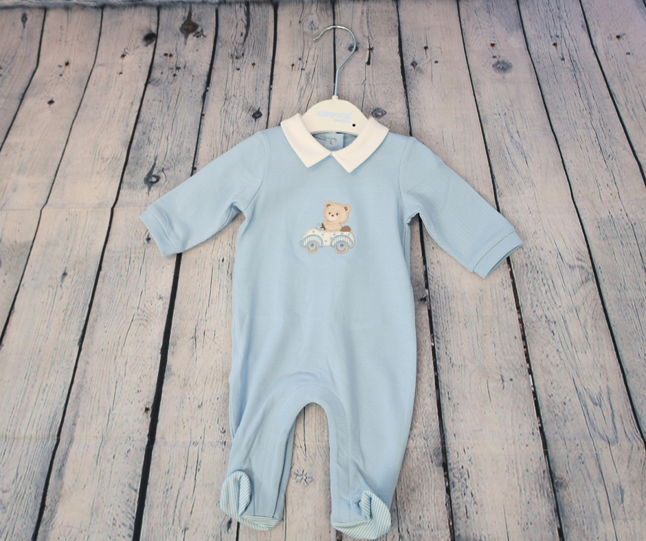 Featuring a blue pajamawith a delicate teddy bear embroidery bear they are both practical and adorable.
