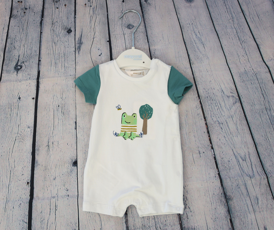 Frog onesie - Mayoral - 0m a 1m is backordered and will ship as soon as it is back in stock.