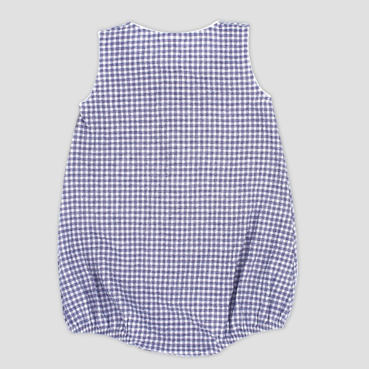 Perfect for everyday wear, this sleeveless blue gingham onesie is designed for maximum comfort and breathability. Featuring front buttons and snap closures at the bottom, it makes dressing and diaper changes quick and easy. A fresh, stylish choice for warm days.