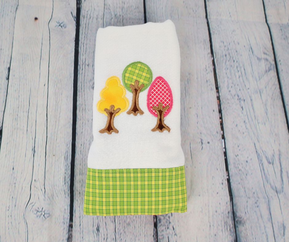 Trees burp cloth - Beatriz Rueda is backordered and will ship as soon as it is back in stock.