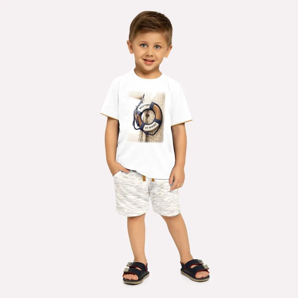 Charming cotton knit set with a lifeguard print, featuring contrasting details on the neckline, sleeves, and waistband. The pants include a drawstring for a perfect fit. Made from superior-quality cotton knit, this outfit is ideal for keeping your little boy looking elegant yet casual on any occasion."