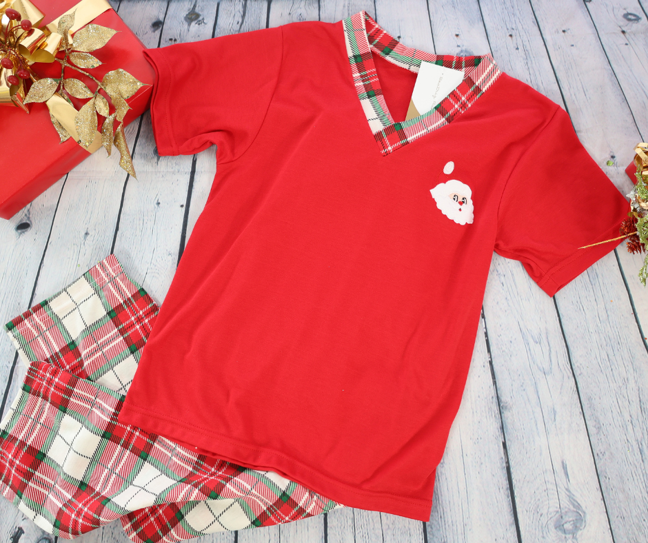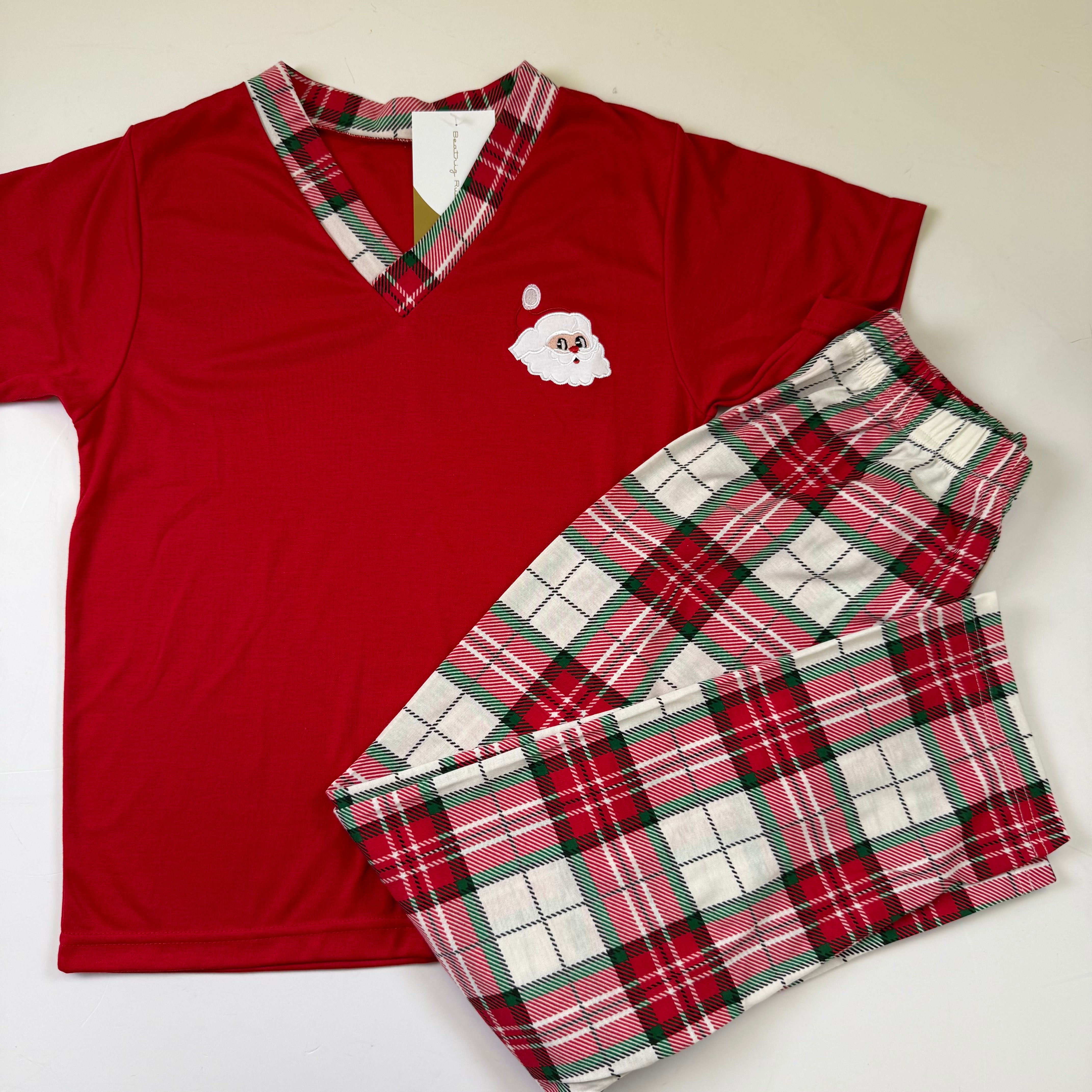 Plaid men pajama with an embroidered Santa, matching the Christmas pajamas for the whole family. Perfect for holiday photos or celebrating Christmas morning together. Don’t miss the chance to create an unforgettable family memory with this exclusive design.