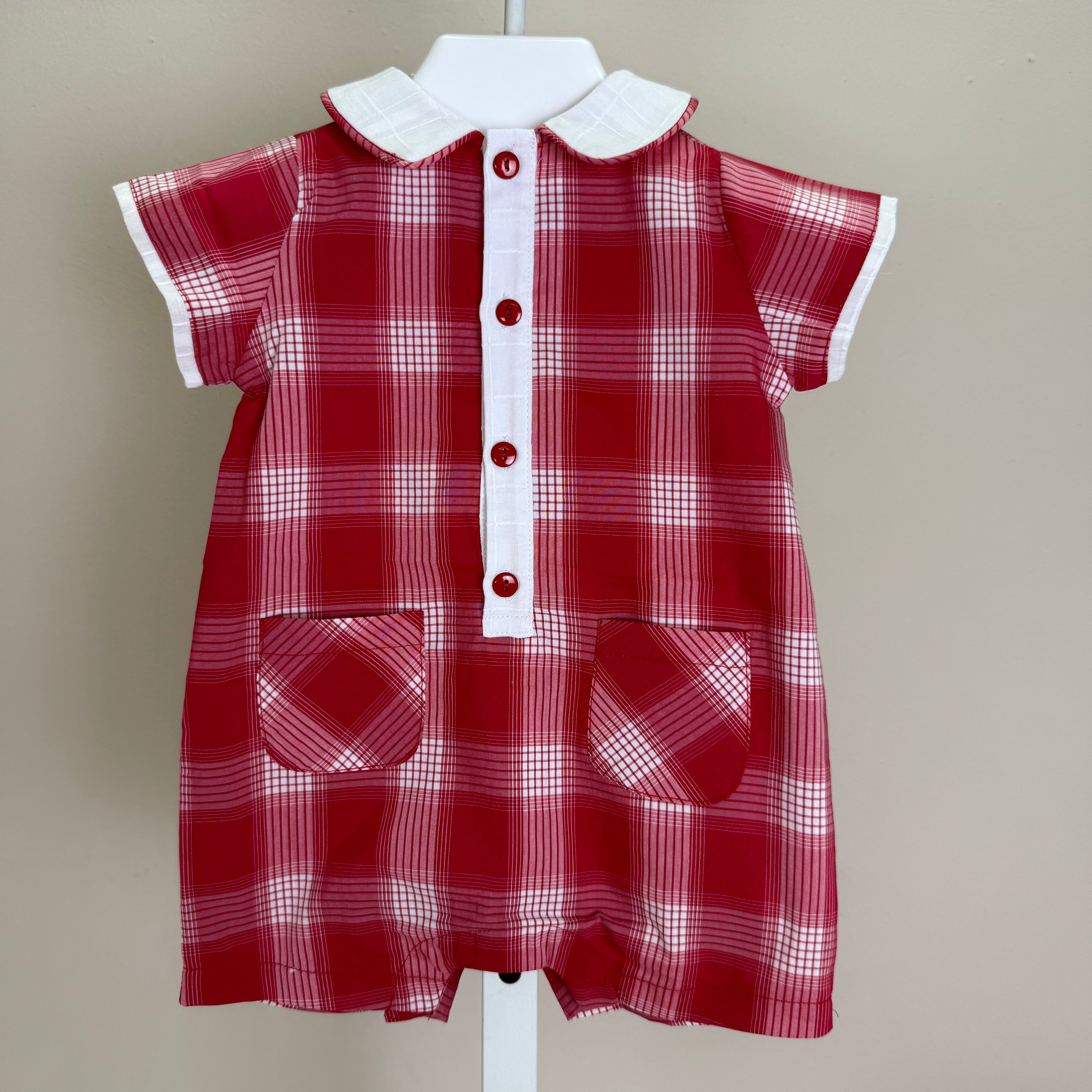Baby bloomer in red and white plaid cotton — fresh, soft, and comfortable, perfect for holiday photos or the festive season. It’s part of a sibling collection made in the same fabric.