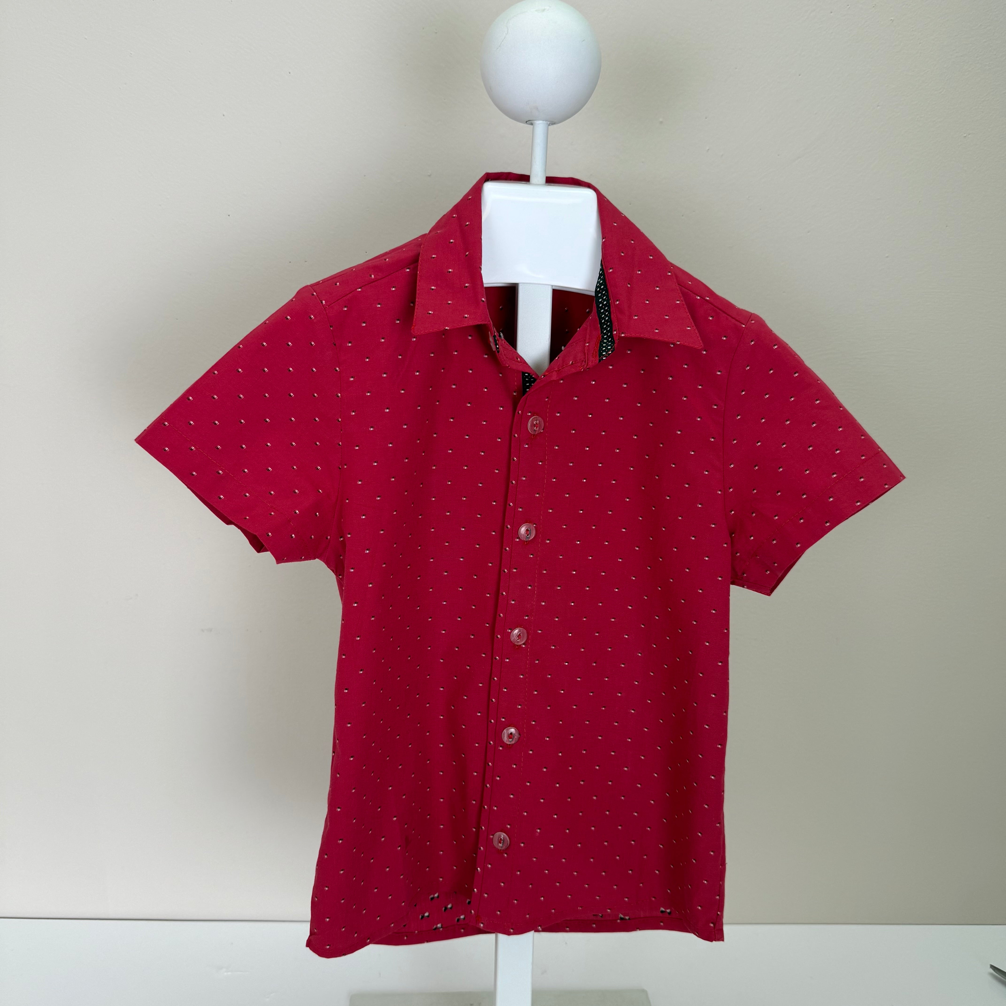 Short-sleeve red cotton shirt, perfect for Christmas celebrations or family holiday photos. Pairs beautifully with matching sibling styles in the same fabric — the perfect look for an unforgettable photo.