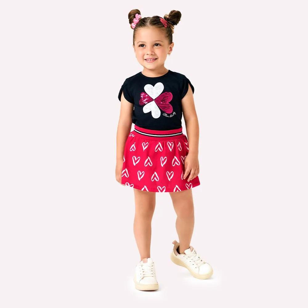 Skirt-pant set with adjustable waist and t-shirt featuring a lovely sequin embroidery. Perfect for any occasion, whether casual or a touch of elegance."