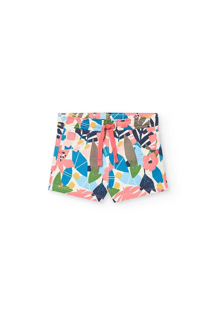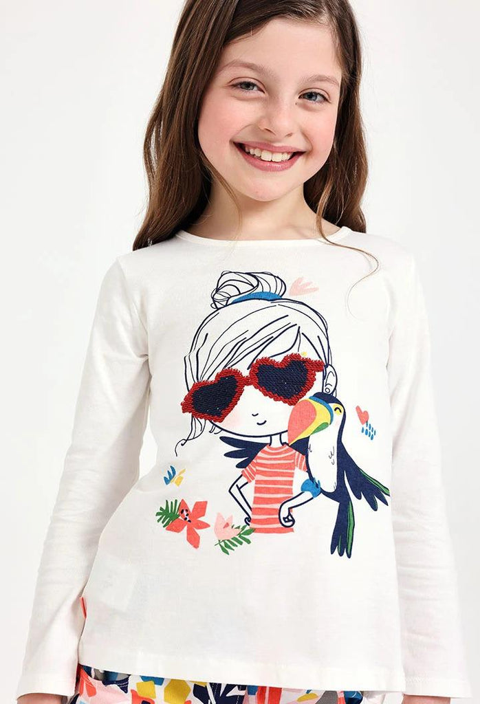 This adorable set features lightweight cotton knit shorts with a bold modern floral print, paired with a long-sleeve top that's as fun as it is comfy. The highlight? A playful girl-with-sunglasses graphic, detailed with embroidered sequins for a sparkling touch. Perfect for after-school hangouts or any moment she wants to feel stylish and relaxed.