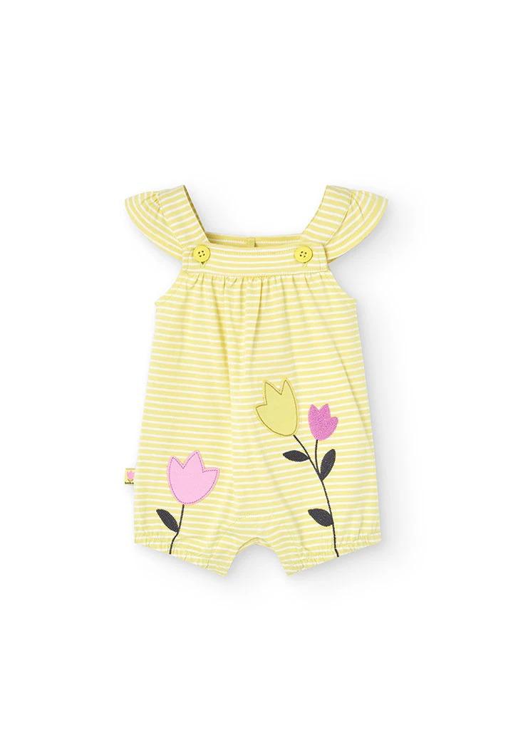 This adorable cotton knit bloomer  soft stripes, delicate embroidered flowers, and charming ruffled sleeves. Designed for everyday wear, it offers ultimate comfort and breathability—perfect for keeping your little one cool and stylish all day long.