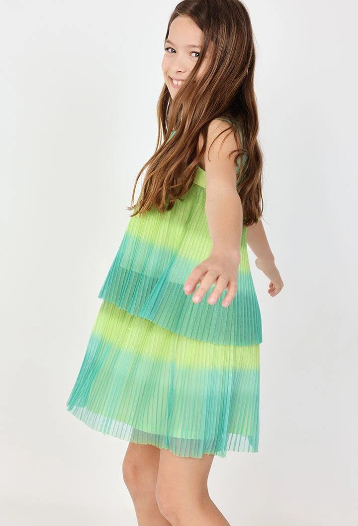 Green pleated dress -