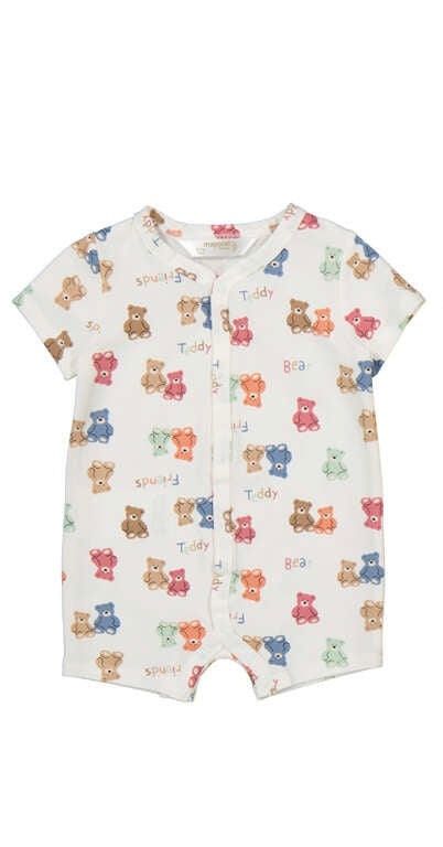 Soft cotton bloomer featuring a sweet print of colorful little bears. Designed with snaps on the front and at the crotch for easy diaper changes and extra comfort for your baby.