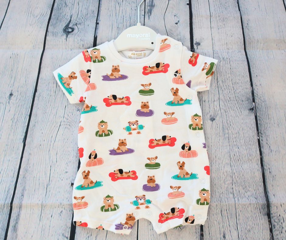 Puppy Print Onesie - Mayoral - 0m a 1m is backordered and will ship as soon as it is back in stock.