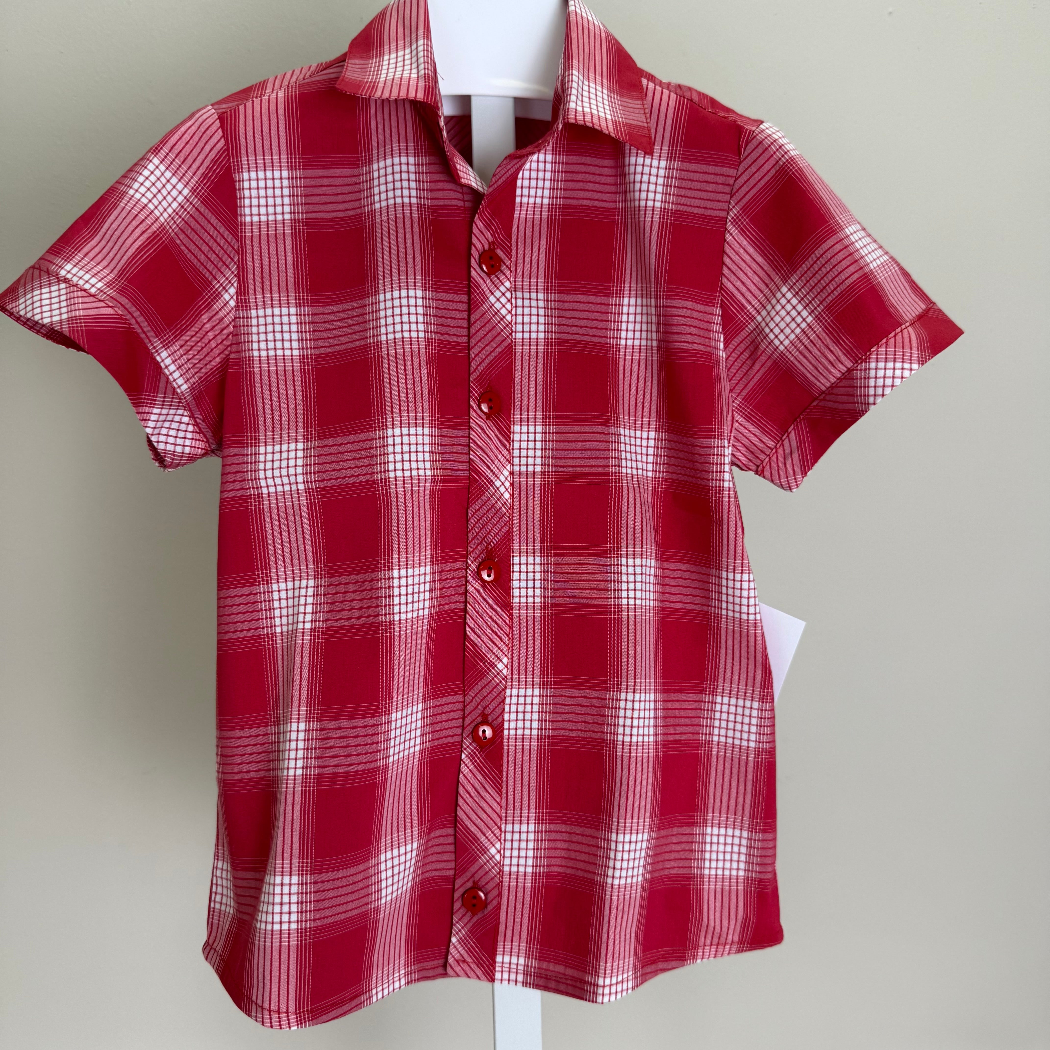 Boy’s short-sleeve shirt made of 100% cotton, ideal for the holiday season. Part of a sibling collection in the same festive fabric — perfect for matching looks.