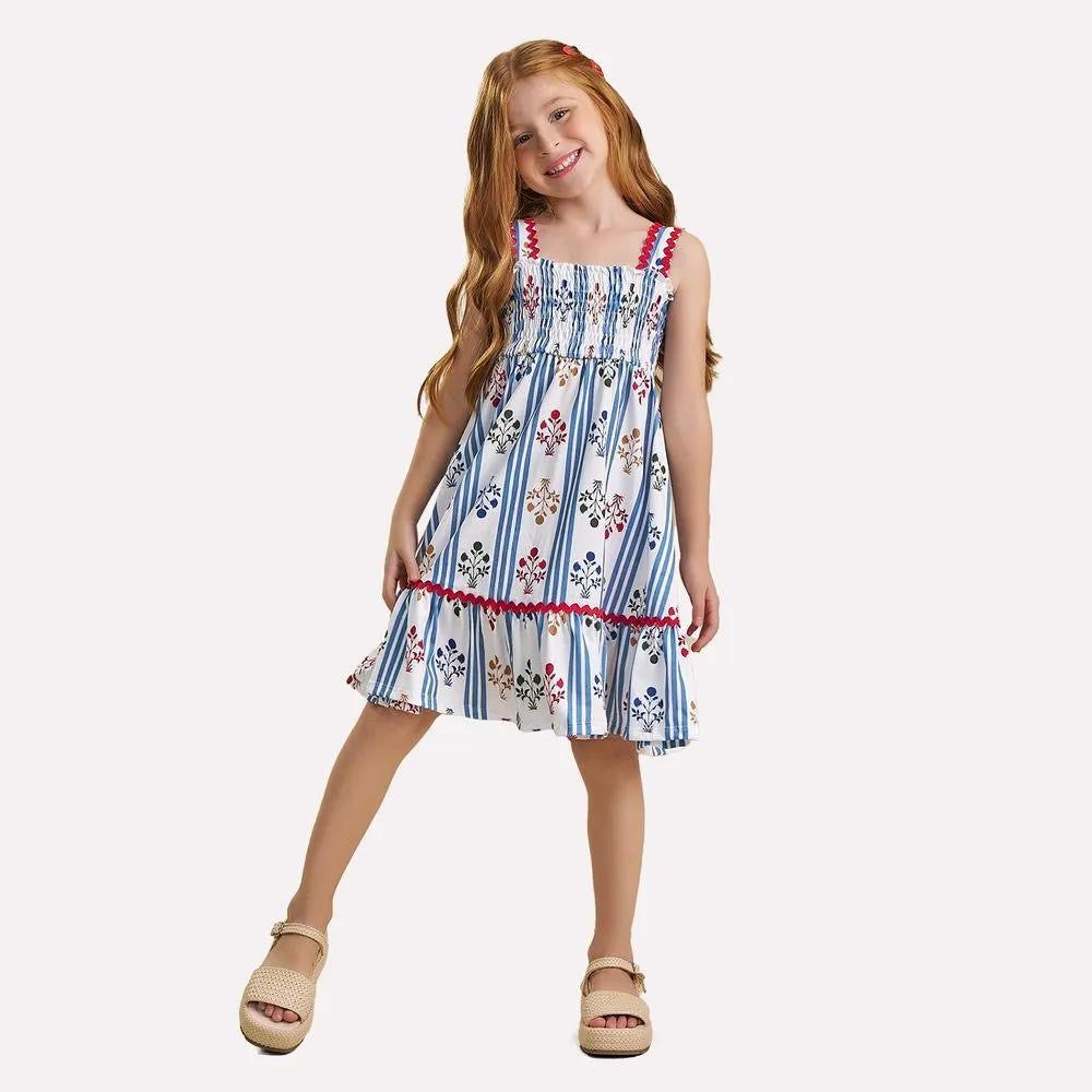 Midi dress made from soft cotton knit fabric, featuring an elasticized back for a better and more comfortable fit. Designed with a modern striped and floral print, this dress is elegant and versatile, making it perfect for any occasion—from casual outings to more polished events.